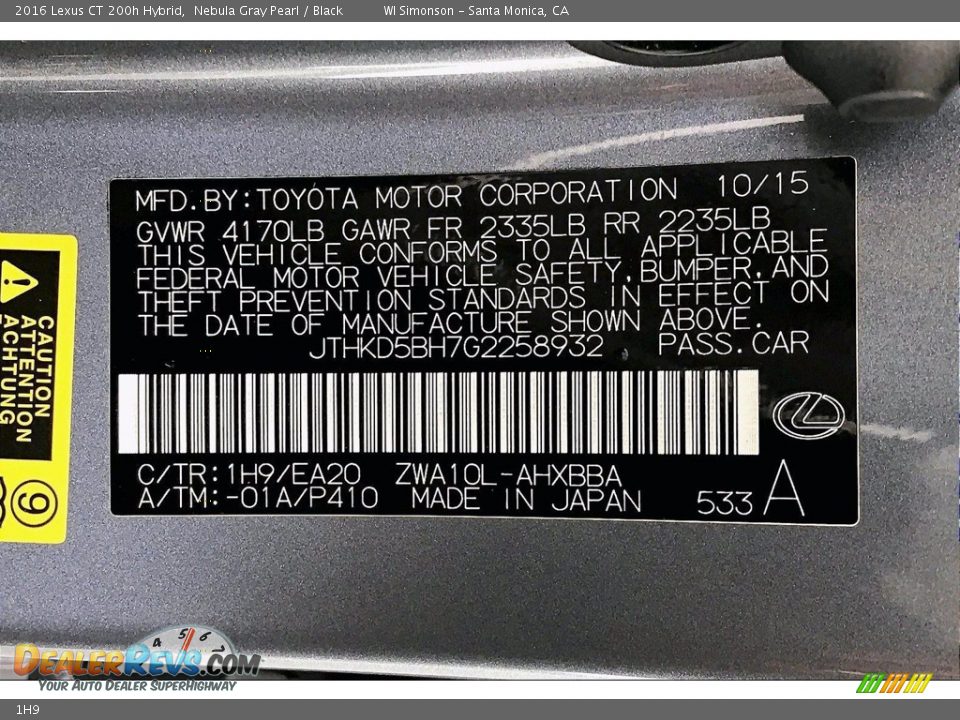Lexus Color Code 1H9 Nebula Gray Pearl