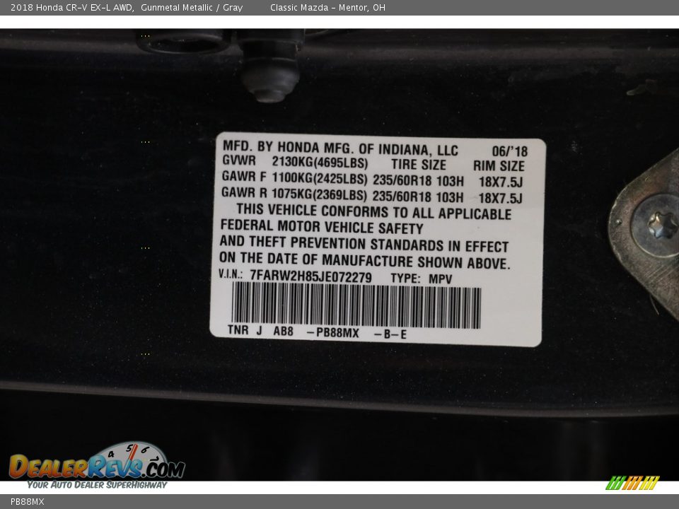 Honda Color Code PB88MX Gunmetal Metallic