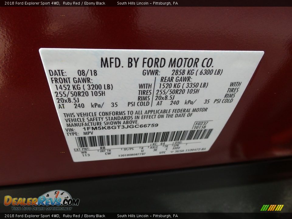 2018 Ford Explorer Sport 4WD Ruby Red / Ebony Black Photo #23